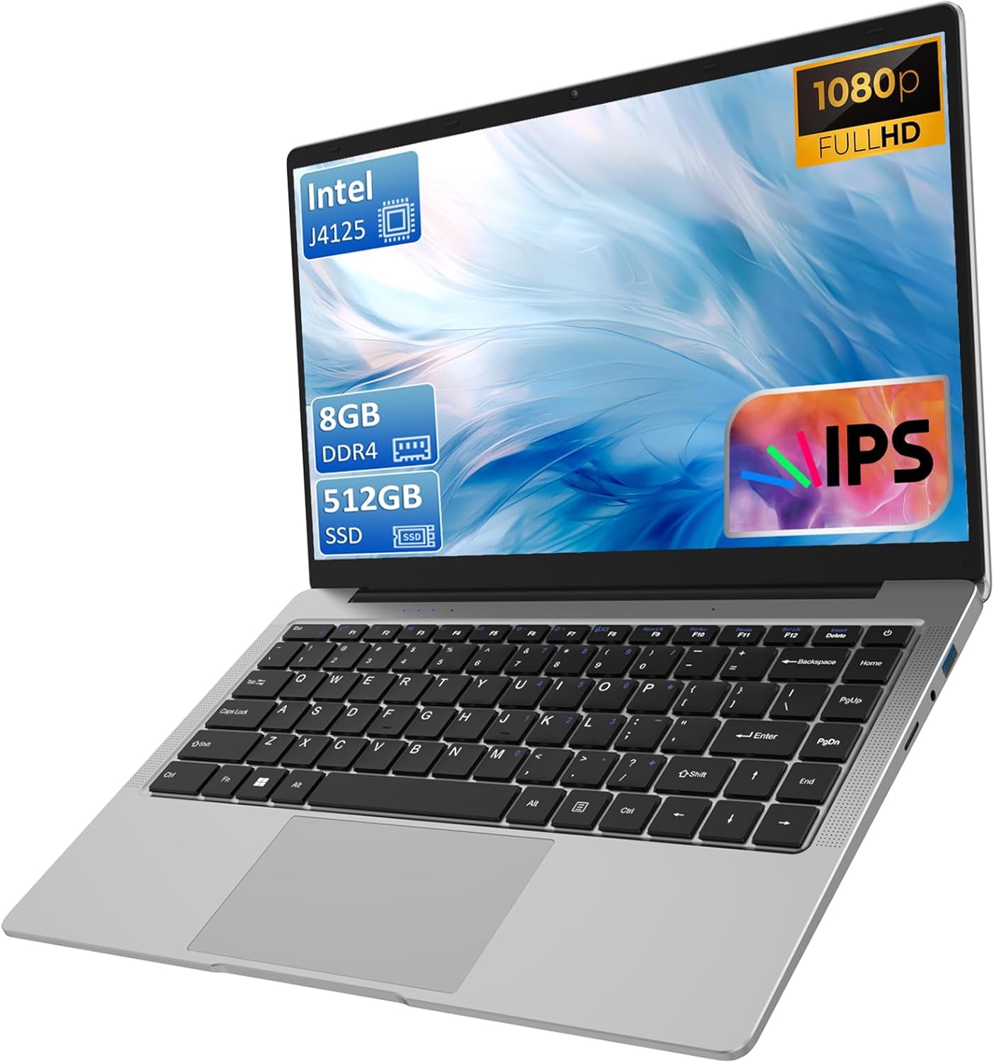 14 Inch Laptop,Laptop Computer with 1920×1080 FHD Screen,Quad-Core Intel Celeron J4125Up to 2.70GHz,8GB RAM 512GB SSD Latops for Student and Office,34WH Battery,2.45G WiFi,Webcam,USB 3.0,Mini HDMI